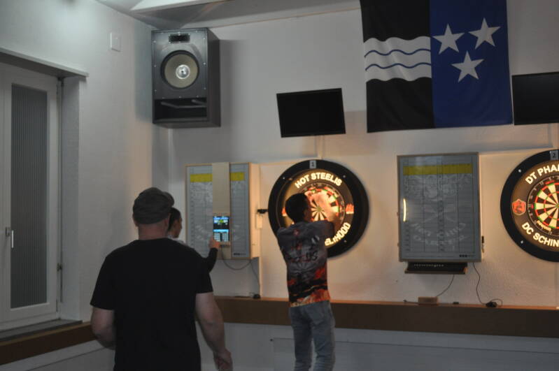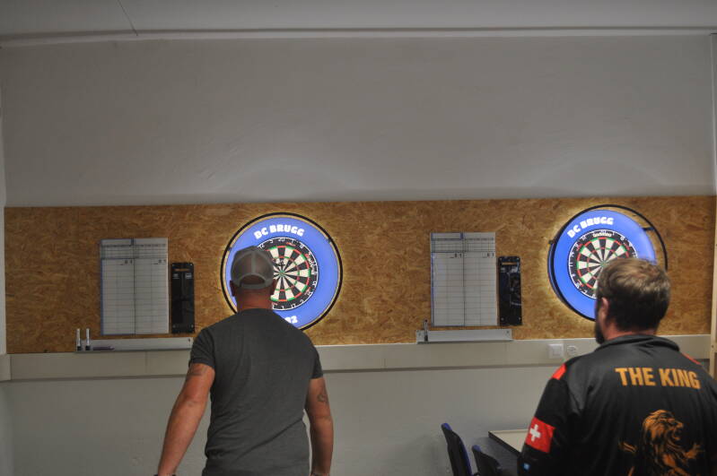 Rund eine Stunde vor Spielbeginn wird das Lokal geöffnet. Das Dampfschiff in Brugg ist das grösste reine Steel-Darts-Lokal im Kanton Aargau und Heimstätte des Dartclub Brugg. Hier tragen drei Teams der DLRA ihre Heimspiele aus. Zudem stellt der DC Brugg auch drei Mannschaften in der SDA (Nationalliga). Zehn Steel-Dartboards stehen hier zur Verfügung – alle ausgestattet mit Beleuchtung und Tablets. Heute wird davon nur rund die Hälfte genutzt, denn zwei der drei Teams spielen auswärts.