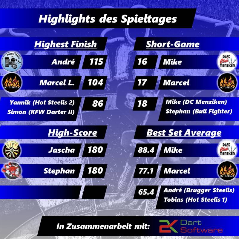 Am Mittwoch, dem 15. November stand das Gränicher Derby zwischen den KFW Darter II und KFW Darter I auf dem Programm. Dort gewannen die "Gäste" knapp im Decider.