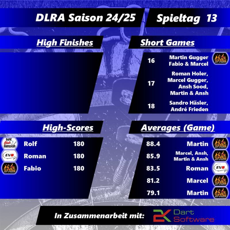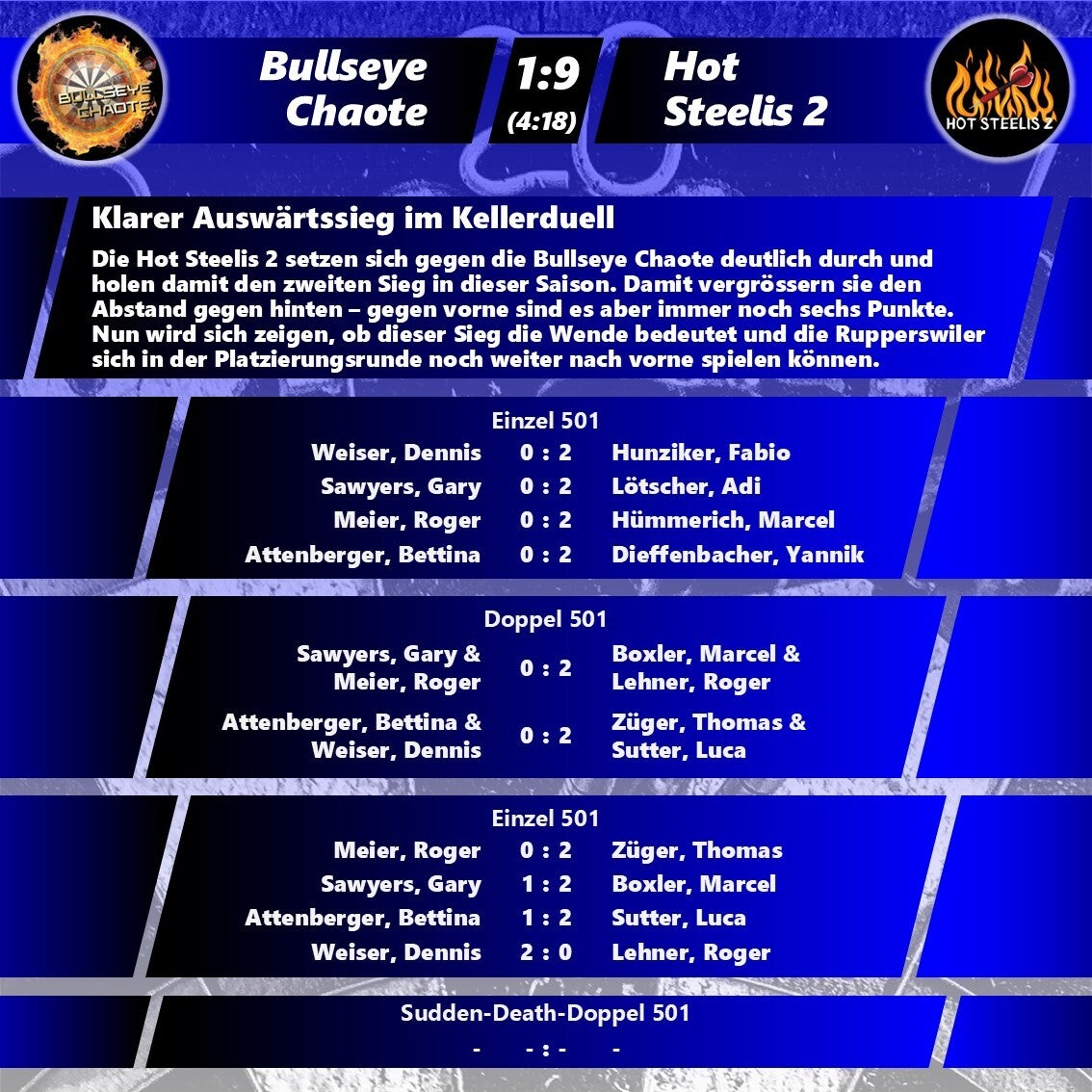 An der Spitze konnten die Hot Steelis 1 ihren Vorsprung beibehalten. Ihre ersten Verfolger sind die EVO Darter und neu die Bull Fighter's auf Platz 3. Die Plätze 2 bis 4 sind durch lediglich drei Punkte, was für die Meisterrunde einiges an Spannung verspricht.
