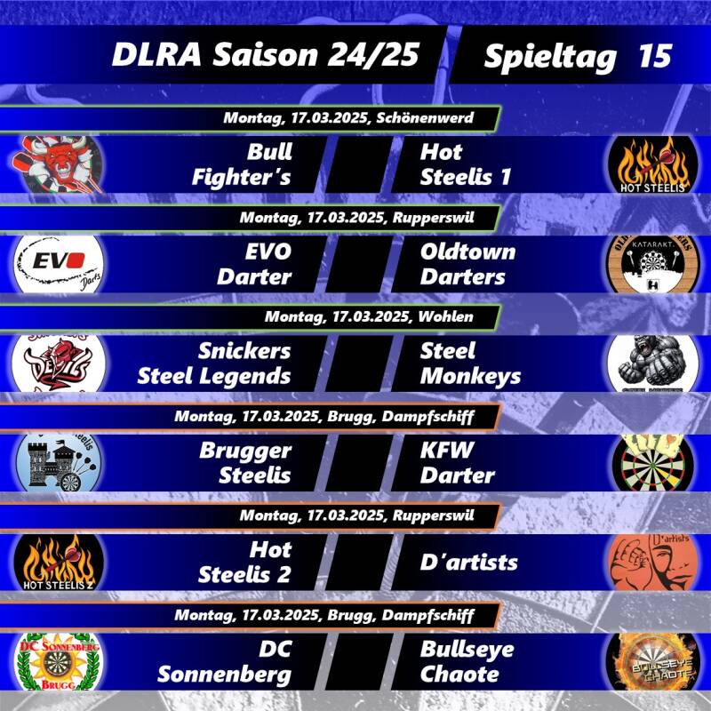 Die Bullseye Chaote könnten mit einem Derby-Sieg nicht nur ihren ersten Vollerfolg feiern, sondern womöglich auch die rote Laterne abgeben. Vorausgesetzt die D’artists gewinnen nicht in Rupperswil.