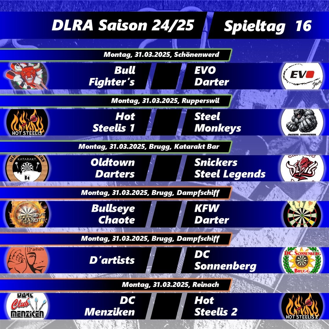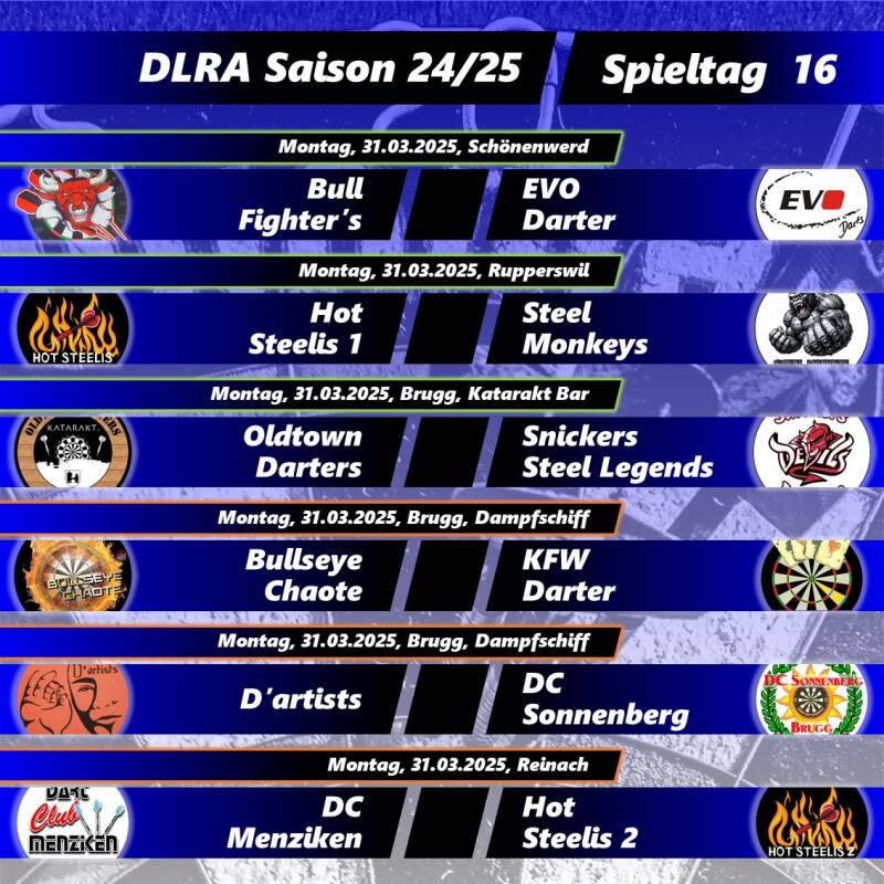 Im zweiten Spiel des Abends kommt es zum Duell zwischen dem Ersten und dem Fünften. Die Gäste aus Kölliken hätten mit einem Punktgewinn die Chance weiter aufzuschliessen. Voraussetzung dafür wäre allerdings eine Niederlage der Steel Legends. Einfach wird dieses Unterfangen jedoch nicht, denn die Hot Steelis 1 werden kein Interesse daran haben ihre weisse Weste vier Runden vor Saisonende zu verlieren. Zudem haben die Gastgeber die Chance den Vorsprung weiter auszubauen, sollten sich die EVO Darter und die Bull Fighter’s im Verfolgerduell die Punkte teilen – wie schon im Hinspiel.